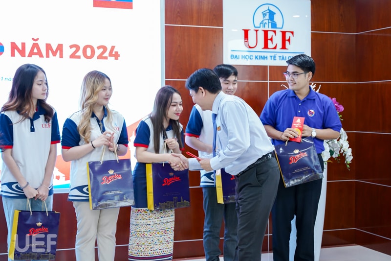 Năm học 2022 - 2023, UEF có hơn 30 lưu học sinh Lào đang theo học chương trình đại học, cao học thuộc các ngành Kinh tế quốc tế, Quản trị kinh doanh, Quan hệ quốc tế. Trong năm qua, có hai lưu học sinh Lào UEF đã được Thành đoàn trao tặng danh hiệu sinh viên tiêu biểu. Trong buổi gặp mặt, UEF cũng đã trao những phần quà may mắn đầu năm mới 2024 cho các bạn.