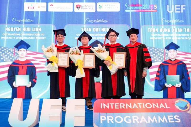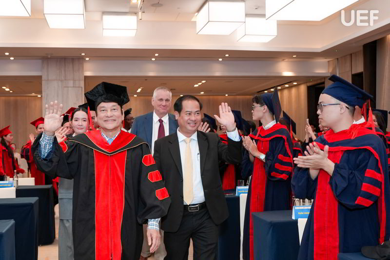 Đại diện Bộ GD&ĐT và các trường đối tác quốc tế cũng gửi lời chúc mừng, đánh giá cao bản lĩnh, tinh thần học thuật của sinh viên UEF, đồng thời bày tỏ kỳ vọng về một thế hệ công dân toàn cầu tự tin, năng động và giàu khát vọng đóng góp.