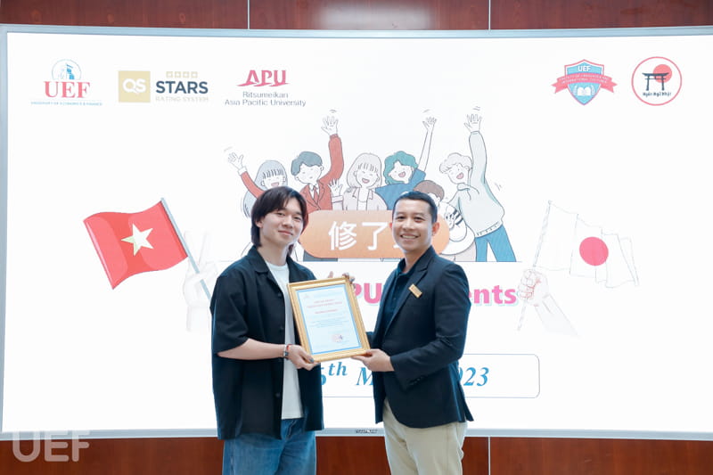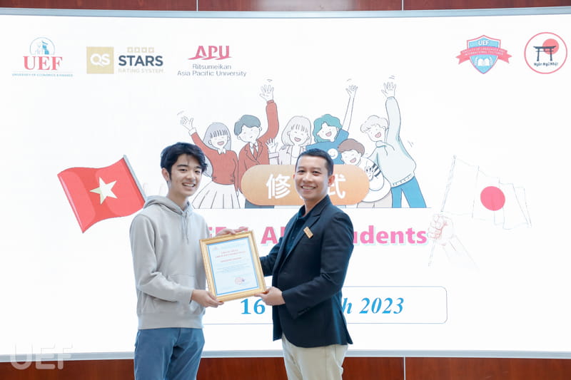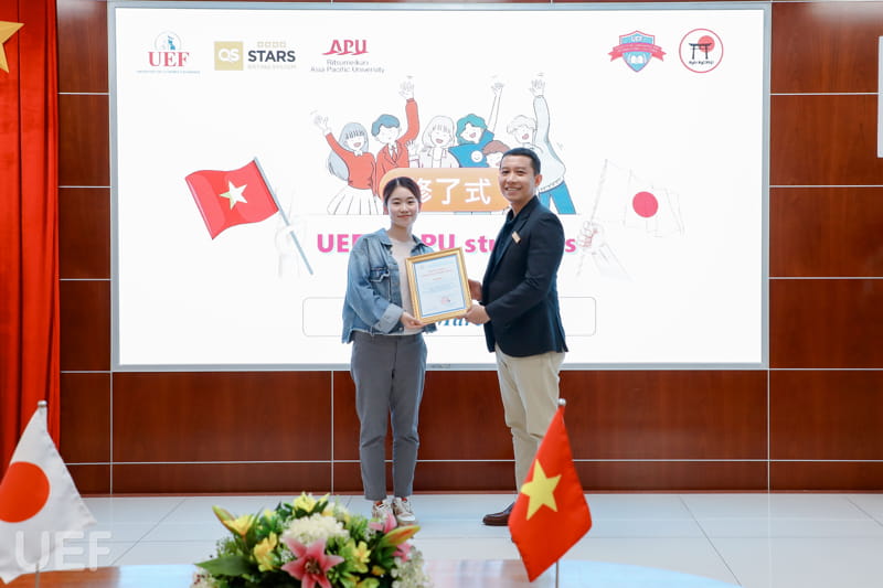 Buổi trao chứng nhận cho 3 sinh viên Nhật Bản hoàn thành khóa thực tập tại UEF