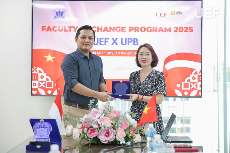 Sáng ngày 10/12, UEF đã có buổi trao đổi học thuật và thảo luận các hướng hợp tác nghiên cứu với Mr. Mohammad Hatta Fahamsyah, giảng viên Universitas Pelita Bangsa, Indonesia. Buổi làm việc diễn ra trong không khí cởi mở, thể hiện tinh thần quốc tế hóa mạnh mẽ của UEF trong việc mở rộng mạng lưới học thuật và nâng cao chất lượng đào tạo, nghiên cứu.