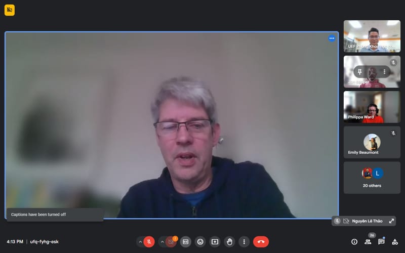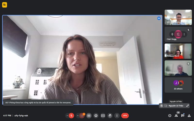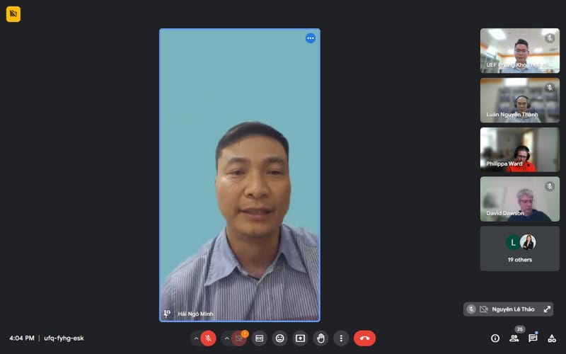 Với sự kết nối ban đầu, các giảng viên, nghiên cứu viên của UoG đã lần lượt giới thiệu bản thân, lĩnh vực chuyên môn, cũng như chia sẻ nhận định về việc hợp tác nghiên cứu cùng UEF.