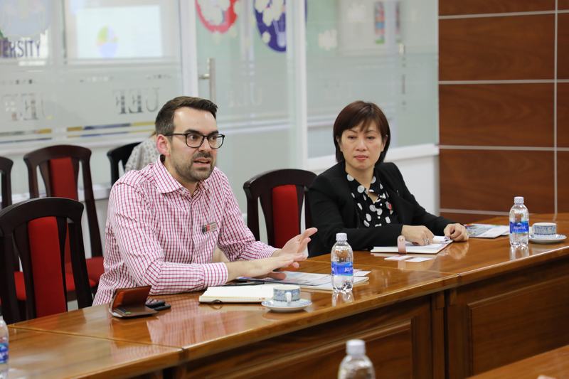 Đại diện Đại học Công nghệ Swinburne gồm PGS.TS. Roffee – Phó Trưởng khoa phụ trách quốc tế Khoa Luật kinh doanh, TS. Đoan Nguyễn – Giám đốc đào tạo khu vực Việt Nam.