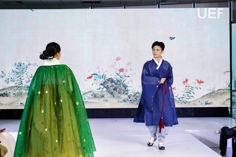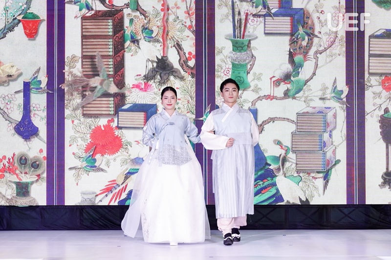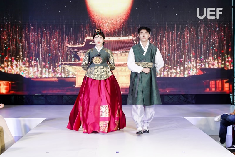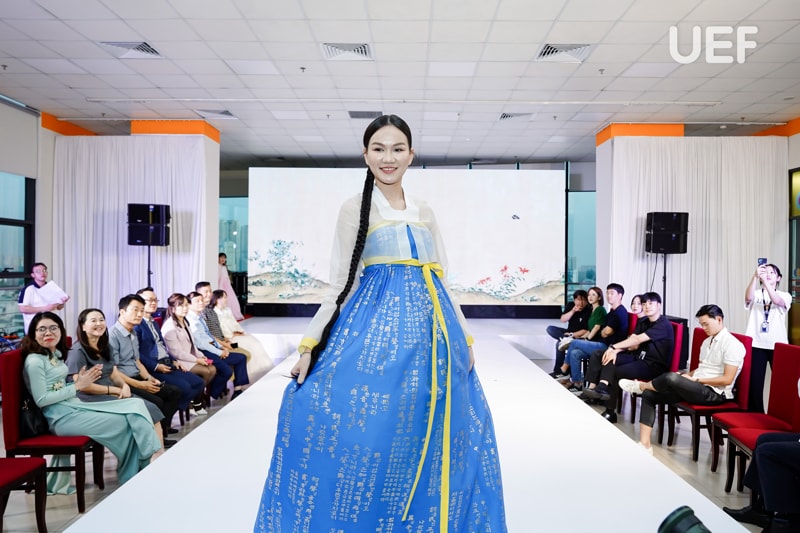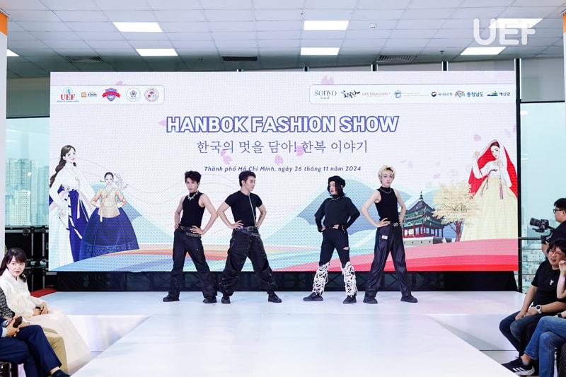 Diễn giả mang đến nhiều thông tin ý nghĩa gắn liền với văn hóa được thể hiện trên mỗi bộ trang phục Tiếp nối, chương trình Hanbok Fashion Show đã mang đến bầu không khí đầy màu sắc và cảm xúc. Các mẫu thiết kế hài hòa, đan xen giữa yếu tố truyền thống và hiện đại được trình diễn bởi sinh viên trường cùng các khách mời đặc biệt, trong đó các thí sinh Miss UEF 2024 đã tạo điểm nhấn biểu tượng, tôn vinh thêm vẻ đẹp Hanbok .