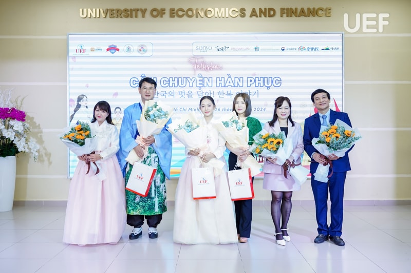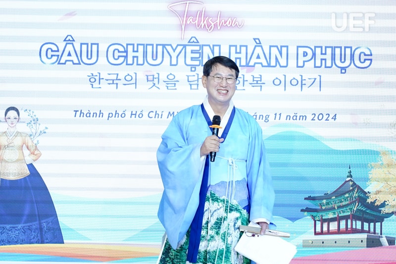 Chiều ngày 26/11, ngành Ngôn ngữ Hàn Quốc, Khoa Ngôn ngữ và Văn hóa quốc tế UEF đã mang đến một hành trình khám phá đầy thú vị với talkshow “Câu chuyện Hàn phục” và chương trình biểu diễn “Hanbok Fashion Show”. Sự kiện đã mở ra không gian giao lưu văn hóa đặc sắc, giúp sinh viên hiểu rõ hơn về vẻ ngoài đẹp đẽ của Hanbok và những giá trị tinh thần sâu sắc mà trang phục này đại diện.