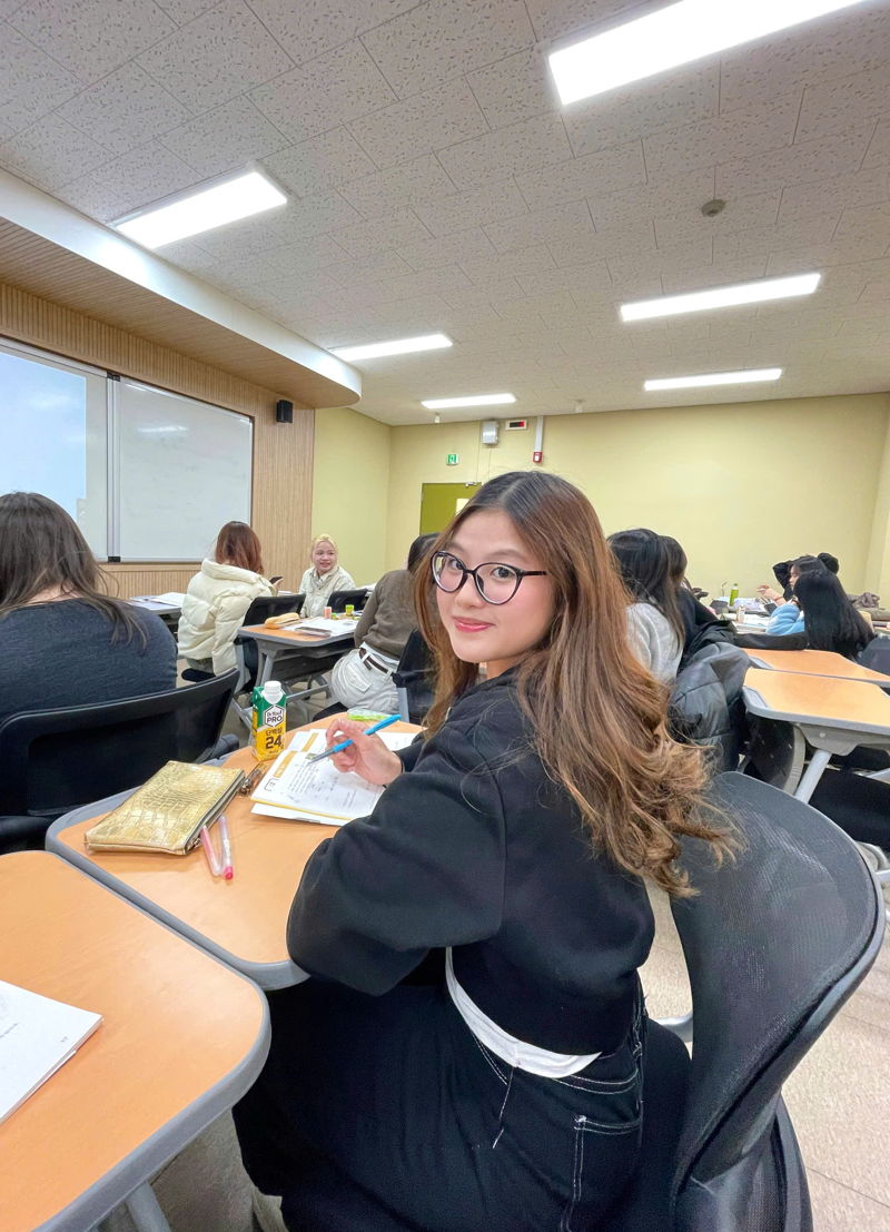 Trong thời gian 6 tháng, Minh Trang sẽ được tiếp cận phương pháp giảng dạy kết hợp giữa lý thuyết và thực hành tại Đại học Quốc gia Chungbuk. Đây là cơ hội để bạn trau dồi kiến thức chuyên ngành Biên - Phiên dịch tiếng Hàn, nâng cao khả năng giao tiếp đa văn hóa và mở rộng tầm nhìn quốc tế. Bên cạnh chương trình học, Trang còn tham gia nhiều hoạt động giao lưu cùng sinh viên quốc tế và Hàn Quốc do trường tổ chức. Những trải nghiệm này giúp Trang mở rộng mạng lưới quan hệ, tăng cường sự tự tin, chủ động và kỹ năng thích nghi trong môi trường đa văn hóa.