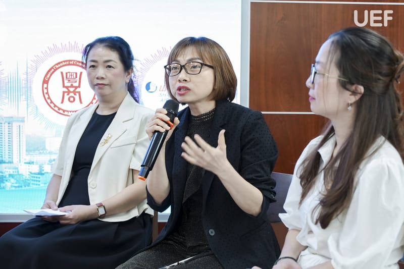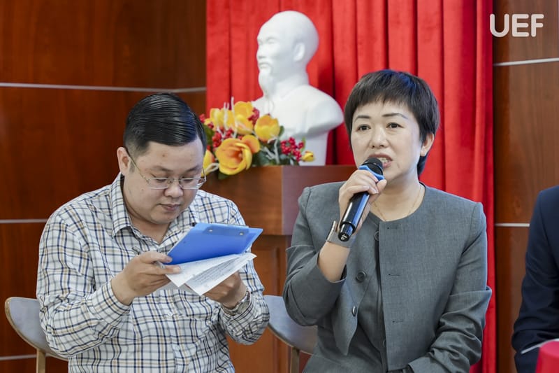Phát biểu mở đầu chương trình, đại diện UEF, TS. Nhan Cẩm Trí nhấn mạnh ý nghĩa của hoạt động giao lưu, trao đổi tri thức hàn lâm và thực tiễn trong việc giúp sinh viên hiểu rõ hơn về văn hóa doanh nghiệp, yêu cầu tuyển dụng và cơ hội thực tập, làm việc tại các doanh nghiệp Trung Quốc. Đây cũng là dịp để sinh viên rèn luyện kỹ năng giao tiếp, đặt câu hỏi và tiếp cận trực tiếp những chia sẻ thực tế từ nhà tuyển dụng.