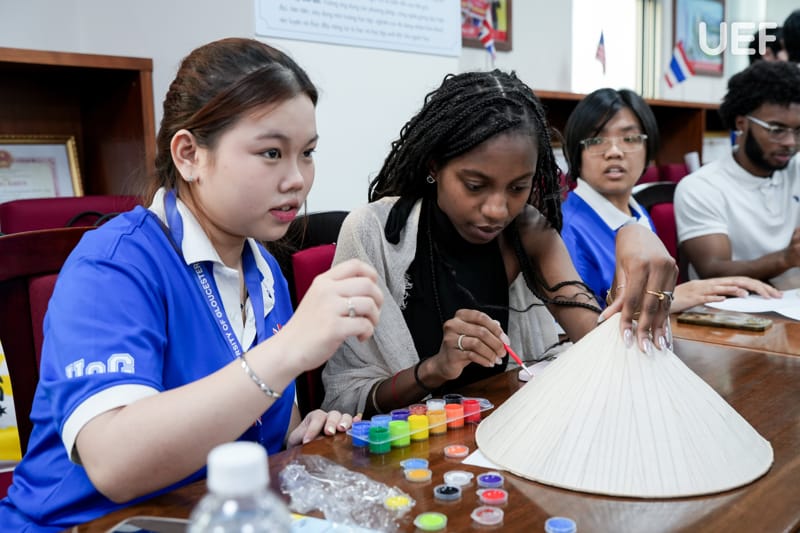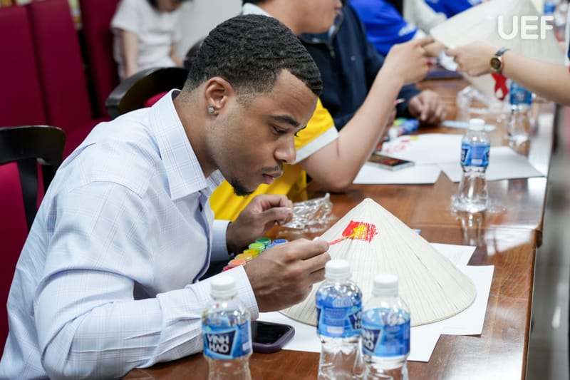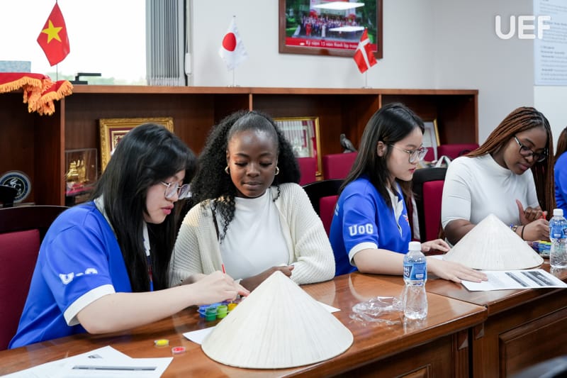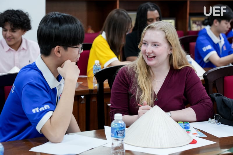 Không khí chương trình trở nên sôi nổi với phần thuyết trình về văn hóa Việt Nam do sinh viên UEF thực hiện, mang đến những nét đẹp truyền thống, gần gũi nhưng giàu bản sắc. Bên cạnh đó, hoạt động giao lưu, minigame vẽ nón lá và các phần trao đổi tự do đã giúp sinh viên hai trường kết nối gần nhau hơn, tạo nên những trải nghiệm đáng nhớ trong hành trình học tập và khám phá văn hóa.