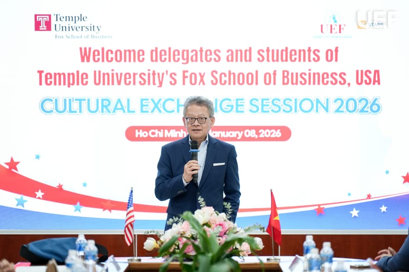 Chiều ngày 8/1, Viện Quốc tế UEF đã tổ chức chương trình “Cultural Exchange Session” - Giao lưu văn hóa và học thuật cùng đoàn giảng viên, sinh viên đến từ Fox School of Business, Đại học Temple (Hoa Kỳ). Sự kiện là hoạt động ý nghĩa nhằm tăng cường kết nối quốc tế, mở rộng giao lưu văn hóa và học thuật cho sinh viên UEF trong môi trường toàn cầu hóa.