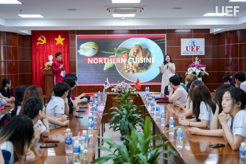 Trong khuôn khổ chương trình, sinh viên UEF đã giới thiệu tổng quan về trường, các hoạt động giao lưu quốc tế cũng như chia sẻ những nét đặc sắc trong văn hóa Việt Nam. Nội dung trình bày tập trung vào sự khác biệt văn hóa ba miền Bắc - Trung - Nam thông qua ẩm thực, điểm đến du lịch, đời sống đường phố, văn hóa cà phê và những phong tục đặc trưng trong dịp Tết Nguyên đán.