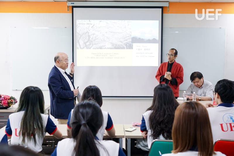 Nhằm giúp sinh viên ngành Ngôn ngữ Nhật tiếp cận thực tiễn, Khoa Ngôn ngữ và Văn hóa quốc tế UEF đã tổ chức workshop "Những điều cần biết về văn hóa Nhật Bản trong kinh doanh" vào chiều ngày 24/3.