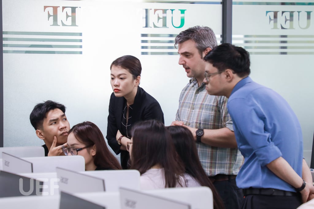 Sinh viên UEF nhận được sự hướng dẫn tận tình từ các giáo sư khi thực hành bài tập