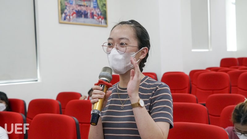 Cuối chương trình, các bạn sinh viên, phụ huynh đã đặt ra nhiều câu hỏi và được đại diện UEF giải đáp cặn kẽ. Cô Thùy Linh nhấn mạnh sẽ không ngừng tìm kiếm các trường đối tác uy tín để sinh viên UEF có thêm môi trường học tập, giao lưu quốc tế chất lượng trong tương lai.