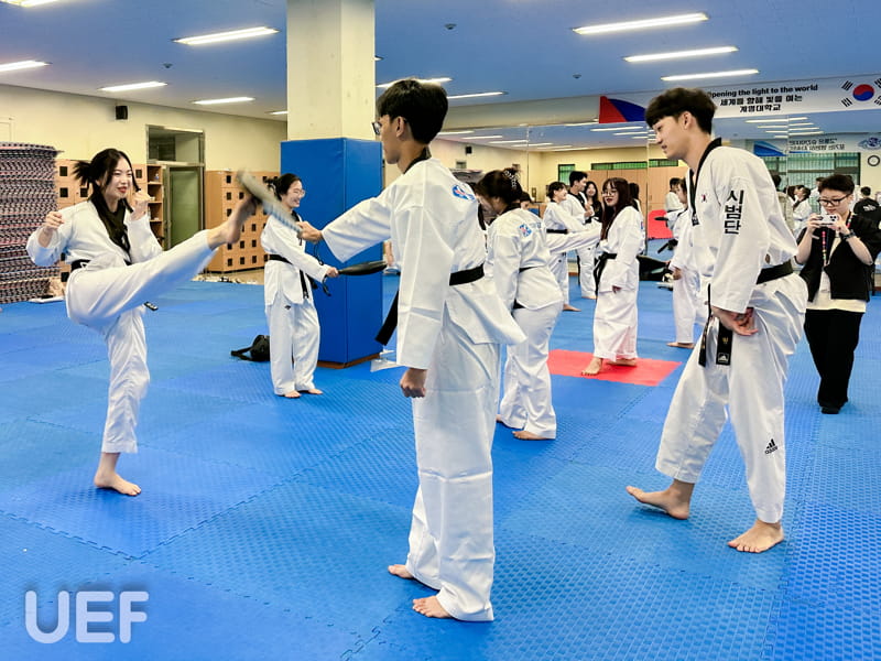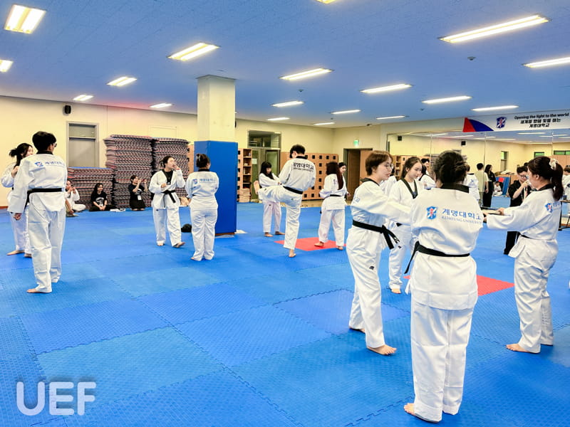 Sinh viên còn được các võ sư tại Đại học Keimyung hướng dẫn và thực hành các tư thế võ căn bản của môn võ thuật truyền thống Taekwondo. Tiếp nối hoạt động của chương trình, các bạn đã trải nghiệm vẽ gốm, trò chơi dân gian truyền thống Hàn Quốc và tham quan công viên giải trí E-world.