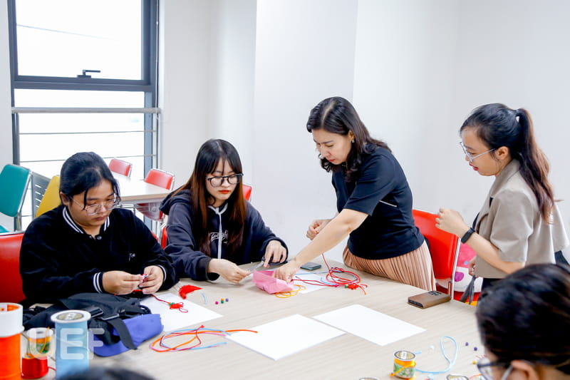 Các thầy, cô giới thiệu nhiều loại nút thắt khác nhau được người Trung Quốc sử dụng, hướng dẫn và thực hành từng bước cụ thể để tạo nên một nút dây Trung Hoa tiêu chuẩn và hoàn hảo (quy trình thắt nút 1 sợi và từ 2 sợi trở lên).