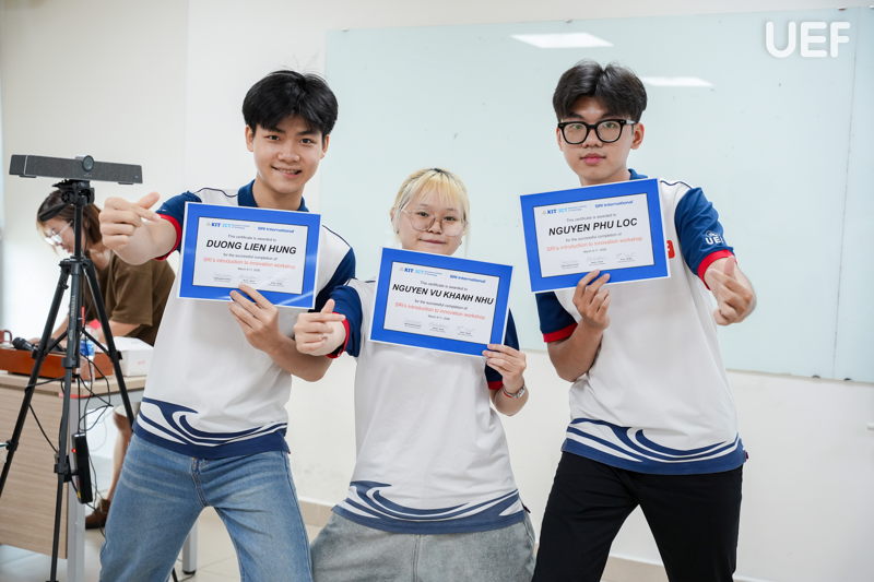 Trong suốt các buổi học, sinh viên UEF và KIT lên lớp với giờ học lý thuyết kết hợp thực hành, thảo luận nhóm và trao đổi liên tục với giảng viên quốc tế. Từ việc tìm hiểu các nguyên tắc nền tảng của đổi mới sáng tạo, sinh viên từng bước hình thành tư duy tiếp cận vấn đề theo hướng hệ thống, chú trọng đến nhu cầu thực tế của xã hội.