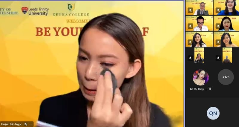 Trixiebaeee đã thực hành ngay tại chỗ giúp sinh viên có những tips make up đúng, đẹp và nhanh