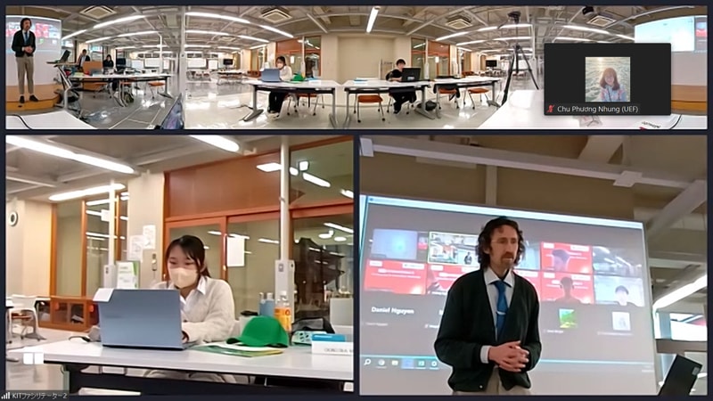 Các bạn trao đổi cùng giảng viên, sinh viên quốc tế về các dự án