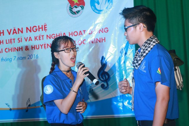 Tối ngày cùng ngày, tất cả lại quy tụ trong chương trình văn nghệ kỉ niệm 27/07 và tiến hành kết nghĩa các hoạt động giữa đoàn trường UEF và huyện đoàn Lộc ninh. Những tiết mục văn nghệ đặc sắc do các chiến sĩ dàn dựng và biểu diễn đều được bà con địa phương ủng hộ nhiệt tình. Dù trời mưa to trước giờ diễn nhưng bà con vẫn đến tham dự đông đủ, tiếp thêm sức mạnh để các chiến sĩ cống hiến những tiết mục “máu lửa” và tràn đầy cảm xúc.