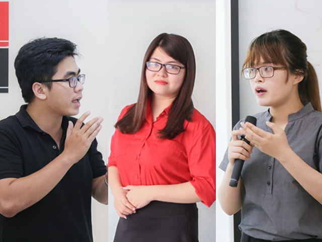 Bằng vốn hiểu biết, kỹ năng và bản lĩnh thuyết trình của mình, 3 bạn Lưu Vinh Thuận (Nhóm 1, khóa 2013, khoa Quản trị kinh doanh), Đỗ Ngọc Thủy Tiên (Nhóm 1, khóa 2013, khoa Tài chính – Kế toán) và Phan Thị Vân Anh (Nhóm 2, khóa 2013, khoa Tài chính – Kế toán) đã vượt qua nhiều thí sinh để chính thức tranh tài tại chặng về đích.