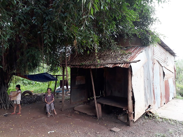 Cụ bà Nguyễn Thị Dây bên ngôi nhà cũ ọp ẹp, xiêu vẹo của mình