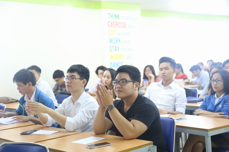 Các bạn sinh viên chăm chú lắng nghe thông tin về “AEON Future Leader 2018”