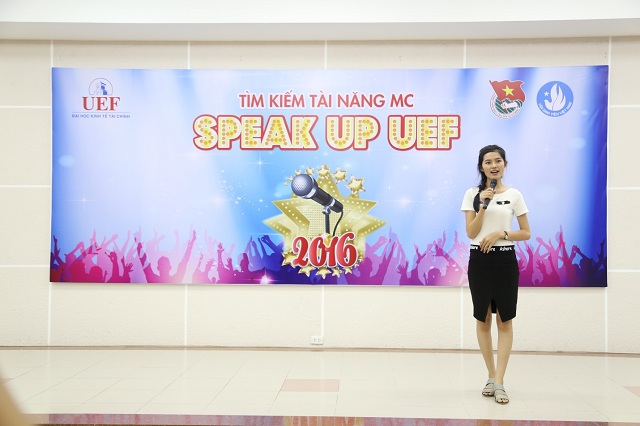 Cuộc thi “Tìm kiếm tài năng MC – Speak up UEF 2016” sau hơn hai tuần phát động đã nhận được phản hồi tích cực của cộng đồng sinh viên Trường Đại học Kinh tế - Tài chính thành phố Hồ Chí Minh với gần 70 thí sinh đăng kí tham gia. Vào chiều ngày 3/11, vòng sơ loại của cuộc thi đã diễn ra tại Hội trường lầu 16.