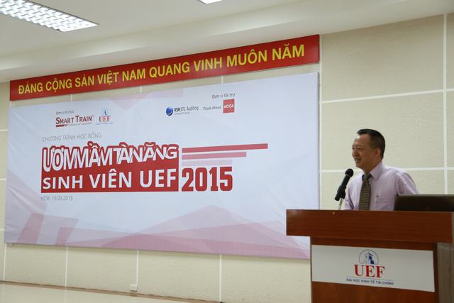Sáng ngày 19/9, cuộc thi học bổng “Ươm mầm tài năng sinh viên UEF 2015” do Trung tâm đào tạo Smart Train phối hợp cùng trường Trường Đại học Kinh tế - Tài chính thành phố Hồ Chí Minh (UEF) tổ chức đã chính thức khởi động.