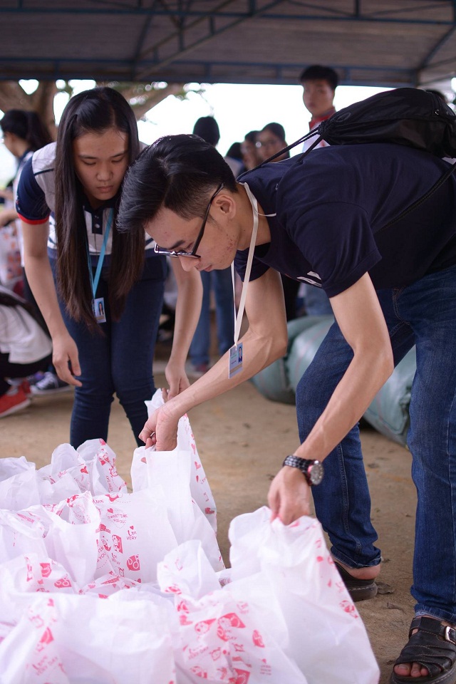 Các thành viên chuẩn bị quà tặng để trao tận tay đồng bào và các em nhỏ
