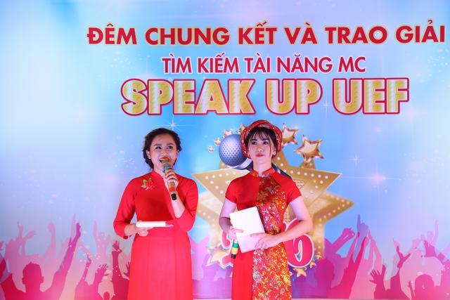 Speak up UEF – Cuộc thi tìm kiếm tài năng MC là một trong những chương trình lớn trong năm dành cho sinh viên có đam mê, năng khiếu trong lĩnh vực dẫn chương trình. Sau gần một tháng diễn ra, từ vòng sơ loại cho đến các phần thi thử thách tài năng, trí tuệ, đêm chung kết đã diễn ra thành công rực rỡ và đã tìm ra được Quán quân của mùa thi đầu tiên.