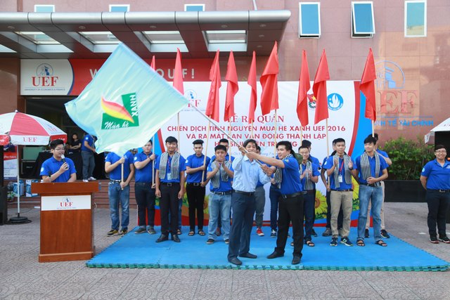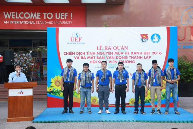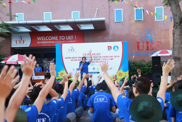 Với tinh thần nhiệt huyết và khát khao cống hiến, gần 150 chiến sĩ áo xanh Trường Đại học Kinh tế - Tài chính thành phố Hồ Chí Minh (UEF) đã tề tựu đầy đủ trong buổi Lễ ra quân chiến dịch tình nguyện hè 2016 tại sân trường sáng nay (18/07/2016).