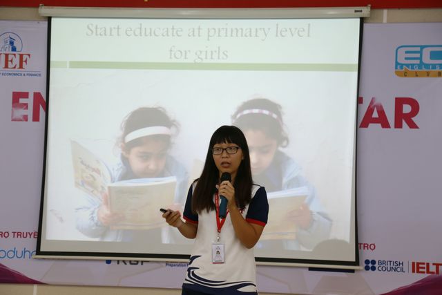 Vòng thi gồm 8 đội, cùng thuyết trình về chủ đề “Education for girls” do ban Tổ chức đặt ra. Sau một tuần chuẩn bị, các đội thi đã cống hiến những phần thuyết trình được đầu tư về hình thức, sâu sắc về nội dung. Nhiều thí sinh đã gây bất ngờ cho Ban giám khảo với khả năng trình bày và giao tiếp tiếng Anh lưu loát, nhạy bén của mình.