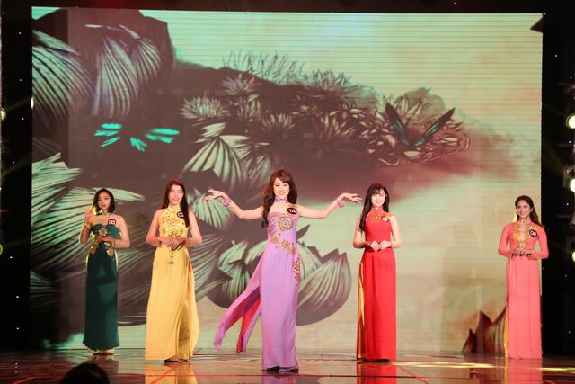 Thướt tha trong trang phục áo dài của Nhà thiết kế Việt Hùng. ảnh: Phú Quang