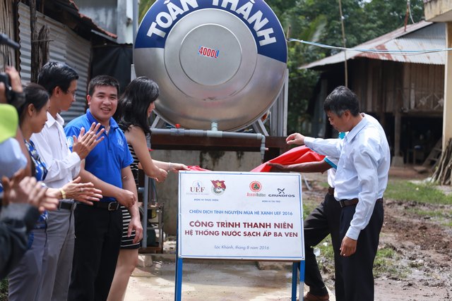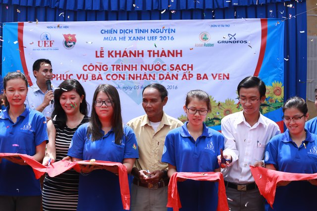 Với sự tài trợ của Công ty TNHH Grundfos Việt Nam, Công ty TNHH cao su Đông Nam Á cùng chuỗi ngày lao động với bao tâm sức, công trình nước sạch cho bà con ấp Ba Ven đã chính thức đi vào hoạt động. Tại Lễ khánh thành, ông Trần Quang Vinh - Phó Bí thư Đảng ủy, Chủ tịch UBND xã Lộc khánh khẳng định “Công trình của các chiến sĩ MHX Trường Đại học Kinh tế - Tài chính thành phố Hồ Chí Minh rất thiết thực và kịp thời. Ao ước được sử dụng nước sạch của bà con bấy lâu đã được hiện thực. Địa phương sẽ vận hành công trình một cách hiệu quả nhất”. Đại diện công ty Grundfos, bà Trần Thị Mỹ Dung - Giám đốc hành chính nhân sự bày tỏ ấn tượng với sức trẻ UEF. Công ty cũng cam kết sẽ đồng hành cùng công trình, nhanh chóng bảo trì, sửa chữa nếu xảy ra sự cố.