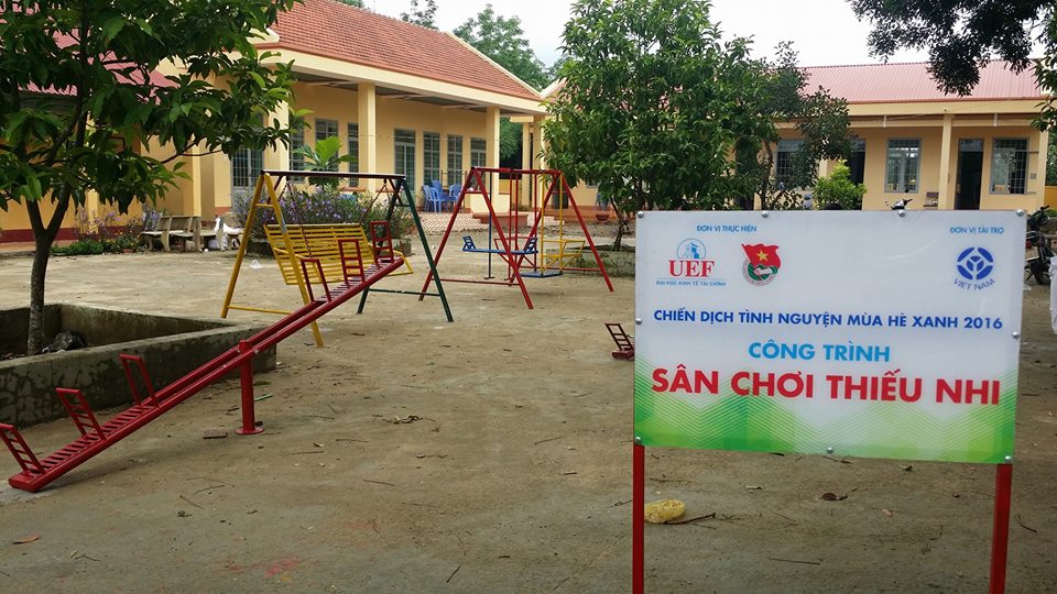 Cùng với công trình nước sạch, thiếu nhi toàn xã đã có sân chơi ý nghĩa được người dân địa bàn đánh giá “trước giờ chưa từng có”. Đó là các hạng mục trò chơi như xích đu, cầu trượt, bập bênh, trò chơi liên hợp... được các chiến sĩ UEF xây dựng và trang bị góp phần hạn chế tình trạng trẻ thiếu sân chơi đi tắm sông, suối dẫn đến tai nạn đuối nước thương tâm.