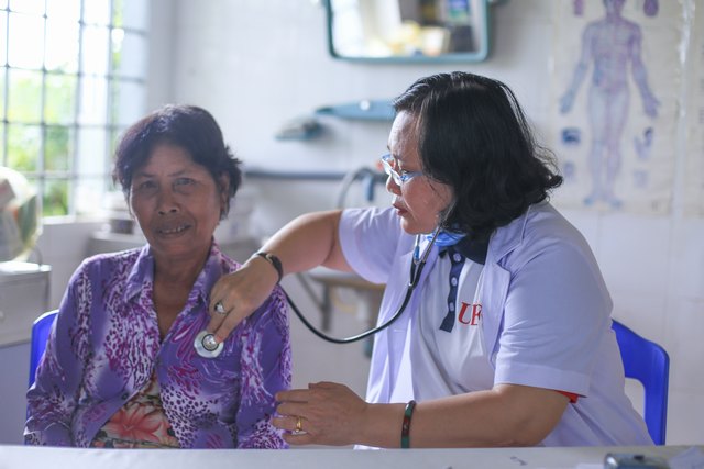 Bác sĩ Lê Anh Hoa thăm khám và tư vấn cách phòng tránh bệnh cho người dân