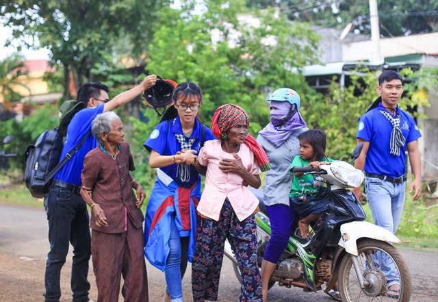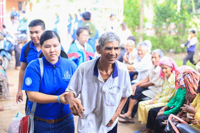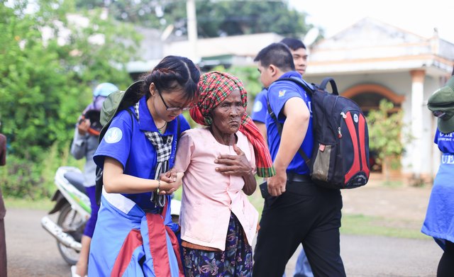 Các chiến sĩ tình nguyện UEF tích cực hỗ trợ hoạt động khám bệnh, phát thuốc cho các cụ già