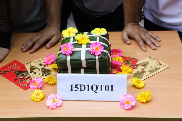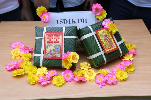 Những chiếc bánh chưng đẹp mắt được tạo thành từ bàn tay khéo léo của các bạn sinh viên