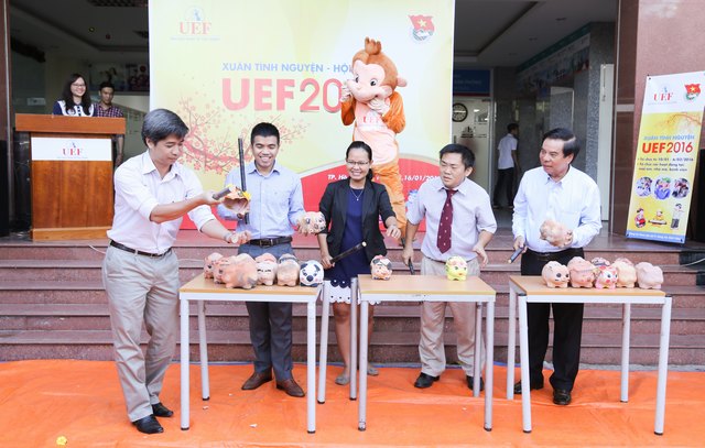 Song song với chương trình Hội Xuân, Đoàn trường đã tổ chức Lễ ra quân chiến dịch Xuân tình nguyện 2016. Tại buổi Lễ, Ban giám hiệu Nhà trường và Lãnh đạo các Phòng, Khoa, Trung tâm đã thực hiện nghi thức đập Heo đất – đây là thành quả ủng hộ của các lớp dành cho hoạt động thiện nguyện ý nghĩa trong mùa xuân này. Với chi phí mà sinh viên cùng các thầy cô ủng hộ sẽ là những phần quà ý nghĩa được sinh viên UEF gửi tặng đến những hoàn cảnh kém may mắn tại các mái ấm, nhà mở nhân dịp xuân về.