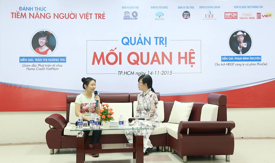Cũng trong buổi hội thảo cùng ngày, bà Trần Thị Hương Thư – Giám đốc Phát triển tổ chức của Home Credit Vietnam cũng đã có phần trò chuyện, trao đổi kinh nghiệm xung quanh vấn đề các bạn trẻ cần nhận thức đúng đắn về mạng lưới các mối quan hệ hỗ trợ của bản thân. Qua đó, các bạn có thể chọn lọc, định hướng xây dựng những mối quan hệ tiềm năng phù hợp và hiệu quả trong tương lai.