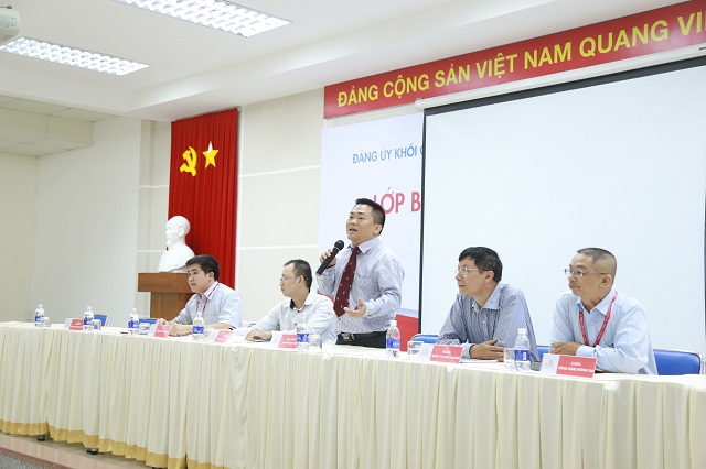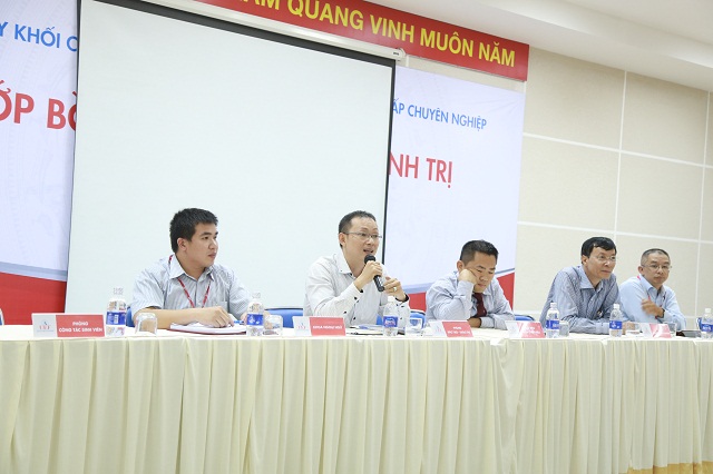 Thầy Ngô Cao cường – Phó Hiệu trưởng Nhà trường và đại diện các đơn vị đã lần lượt giải đáp cặn kẽ và thỏa đáng ý kiến của các bạn sinh viên đồng thời nêu bật một số chủ trương, kế hoạch của Nhà trường trong thời gian tới.