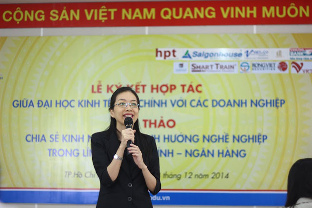 Diễn ra tiếp sau sự kiện ký kết hợp tác doanh nghiệp giữa Trường Đại học Kinh tế - Tài chính thành phố Hồ Chí Minh – UEF và 11 doanh nghiệp đối tác trong sáng 22/12/2014 là chương trình Hội thảo “Chia sẻ kinh nghiệm và định hướng nghề nghiệp trong ngành tài chính ngân hàng” do Khoa Tài chính - Kế toán nhà trường phối hợp cùng Công ty CP Đào tạo Việt Thành Công tổ chức.