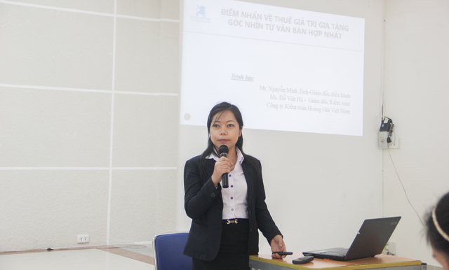 Bà Đỗ Việt Hà – Giám đốc Kiểm toán Công ty Kiểm toán Hoàng Gia Việt Nam trình bày điểm nhấn về thuế giá trị gia tăng – góc nhìn từ văn bản hợp nhất