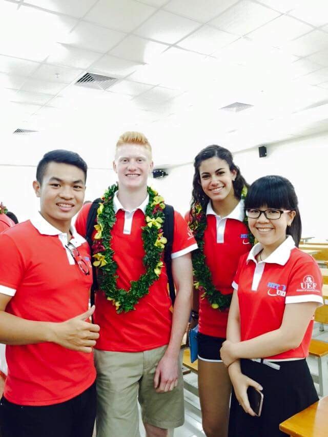 Bảo Trân (góc phải) đồng hành cùng các bạn sinh viên đại học Pittsburgh trong chuỗi hoạt động giao lưu học thuật Plus 3 – 2016