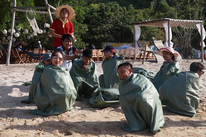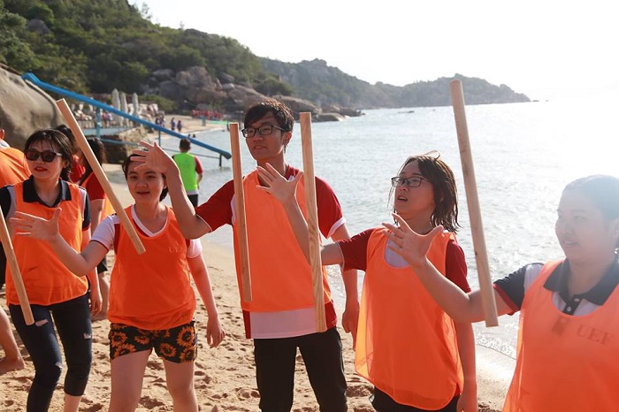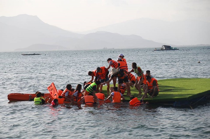 Đến với khu Resort nên thơ được mệnh danh là "Maldives Việt Nam" này, ngoài những phút tạo dáng "chất phát ngất", các thành viên "nhà" UEF tiếp tục hoà mình vào hoạt động teambuilding cùng các trò chơi vận động độc, lạ trên biển.