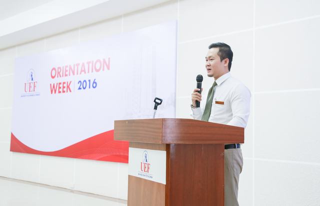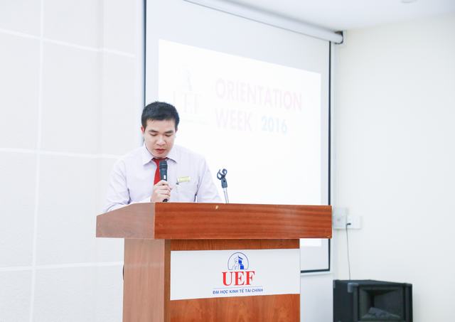 Phát biểu khai mạc chương trình, Thầy Nguyễn Thanh Giang – Hiệu trưởng Nhà trường đã gửi lời chúc mừng đến toàn thể tân sinh viên khóa 2016: “Hòa nhập vào môi trường đại học, các bạn sẽ trải nghiệm nhiều điều mới mẻ, thầy cô, bạn bè mới, phương pháp học tập mới. Để thích nghi và tạo nền tảng vững chắc cho hành trình sinh viên, việc tham gia tuần sinh hoạt đầu khóa là bước chuẩn bị hết sức quan trọng. Trên mỗi bước đi của các bạn, Ban giám hiệu nhà trường cùng toàn thể Cán bộ - Giảng viên – Nhân viên UEF cũng sẽ luôn đồng hành và tạo điều kiện tốt nhất để các bạn tích lũy tri thức, khẳng định bản thân, trưởng thành và gặt hái thành công”.