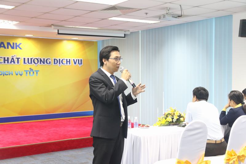 Các bạn sinh viên được tham quan nơi làm việc và lắng nghe đại diện ngân hàng Nam Á chia sẻ