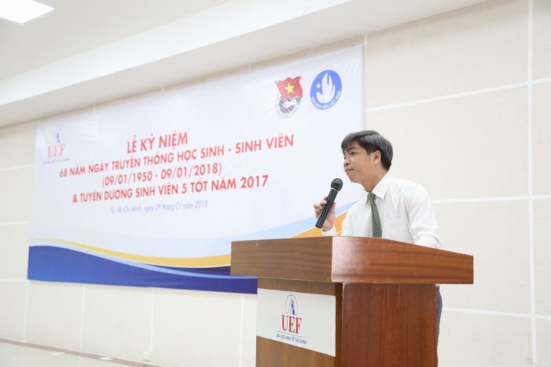 Sáng ngày 9/1, Đoàn trường Trường Đại học Kinh tế - Tài chính thành phố Hồ Chí Minh (UEF) đã tổ chức Lễ kỷ niệm 68 năm Ngày truyền thống học sinh, sinh viên (9/1/1950 – 9/1/2018) và tuyên dương khen thưởng cho các bạn sinh viên đạt danh hiệu Sinh viên 5 tốt năm 2017.