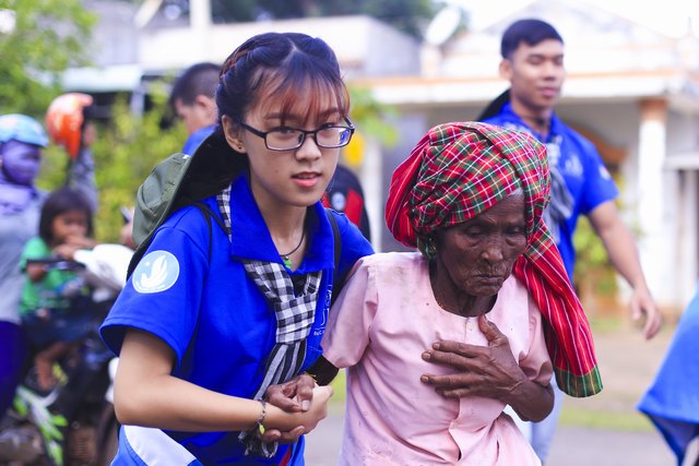 Buổi khám bệnh cho các cụ già diễn ra thành công với sự hướng dẫn của các chiến sỹ UEF