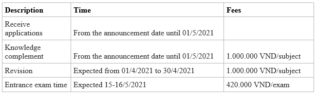 - Those who have graduated from a close major to the registered major have to enroll complementary classes before the entrance exams (the complementary subjects are determined based on the applicant’s university transcript).