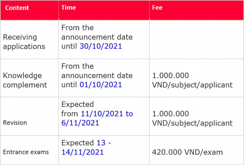 - Applicants whose university major is close to the registered major have to attend complementary courses before the entrance exams (determined based on the university transcript of the applicant).